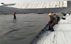人工湖城市河道治理膨潤(rùn)土防水毯施工鋪設(shè)現(xiàn)場(chǎng)